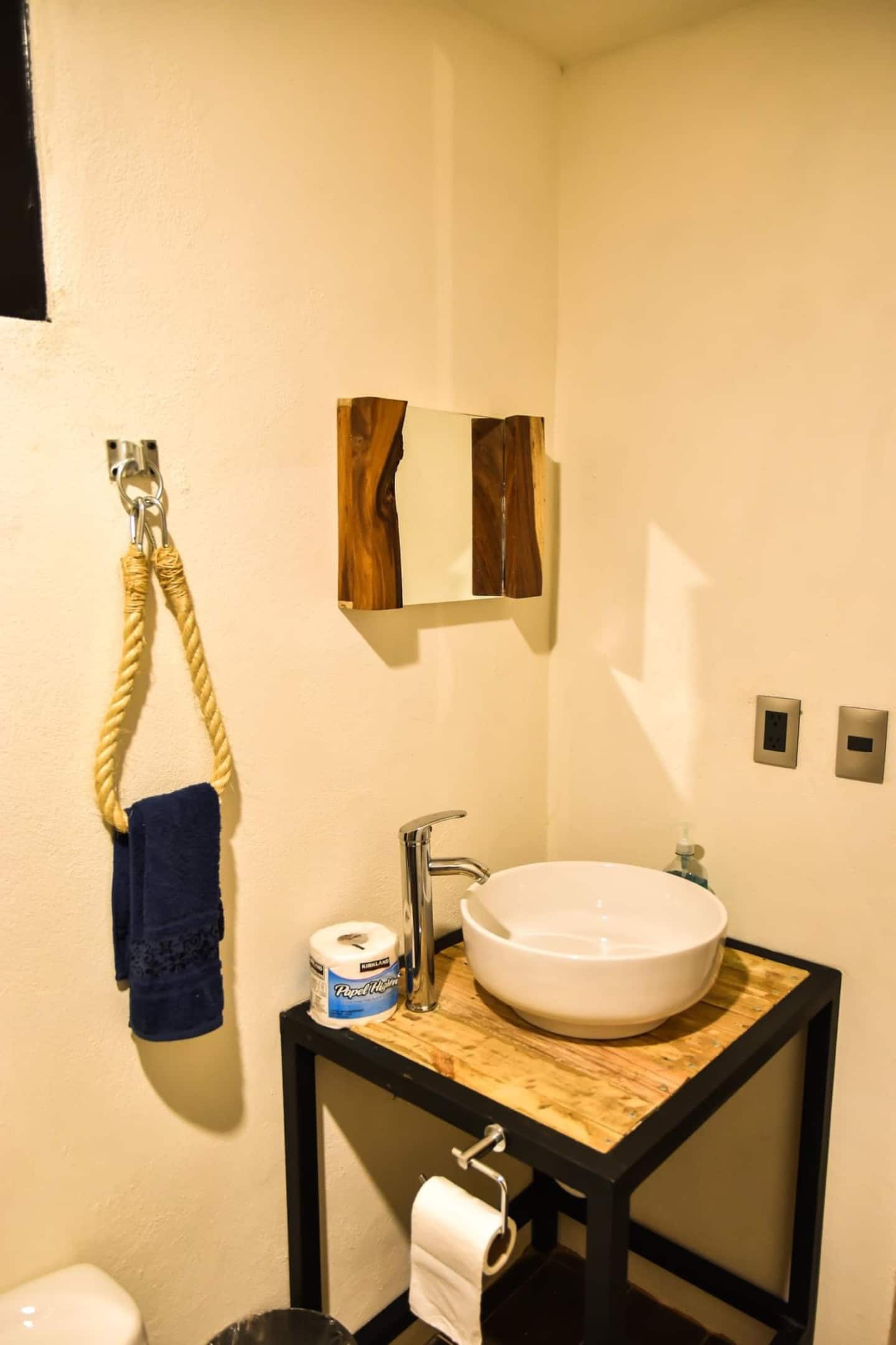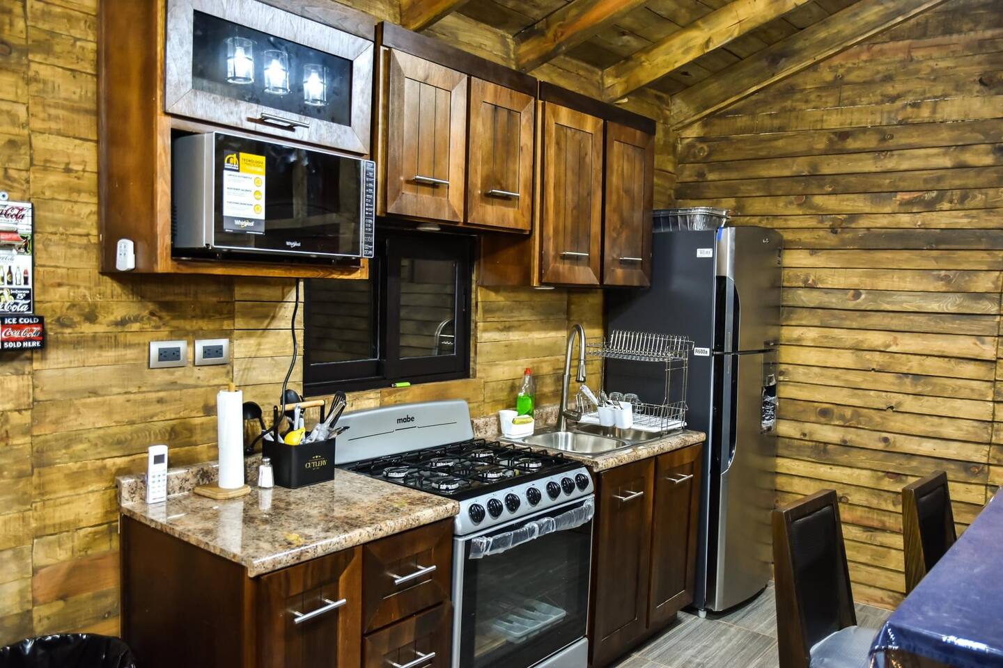 Contamos con todas las amenidades como aire acondicionado, sky, internet, cocina completamente equipada, palapa de muy buen tamaño, asador, muchos senderos por donde caminar, etc.