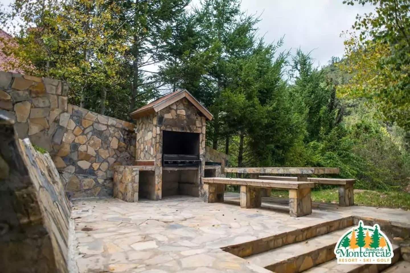 Acogedora cabaña de lujo totalmente equipada dentro de Bosques de Monterreal para 8 personas, en excelentes condiciones. Ideal pasa pasar unos días diferentes rodeados de la naturaleza. Cerca del pueblo San Antonio de las Alazanas.